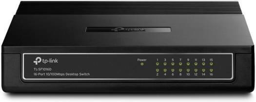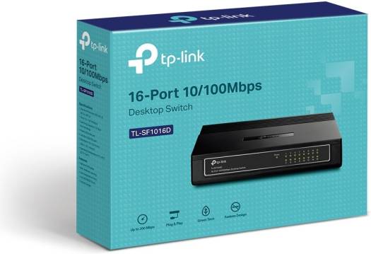 16 10/100Mbps Auto-Negotiation RJ45 ports, Supports Auto MDI / MDIX Green Ethernet technology saves power consumption IEEE 802.3x flow control provides reliable data transfer Plastic case, desktop or wall-mounting design Plug and play, no configuration required What This Product Does The TL-SF1016D Fast Ethernet Switch is designed for SOHO (Small Office/Home Office) or workgroup users. All 16 ports support auto MDI/MDIX, no need to worry about the cable type, simply plug and play. Moreover, with the innovative energy-efficient technology, the TL-SF1016D can save on power consumption and most of the packaging material can be recycled, making it an eco-friendly solution for your business network. High Performance TL-SF1016D Fast Ethernet Switch provides 16 10/100Mbps Auto-Negotiation RJ45 ports. All ports support Auto MDI/MDIX function, eliminating the need for crossover cables or dedicated uplink ports. IEEE 802.3x flow control for full-duplex mode and backpressure for half-duplex mode manage the tr