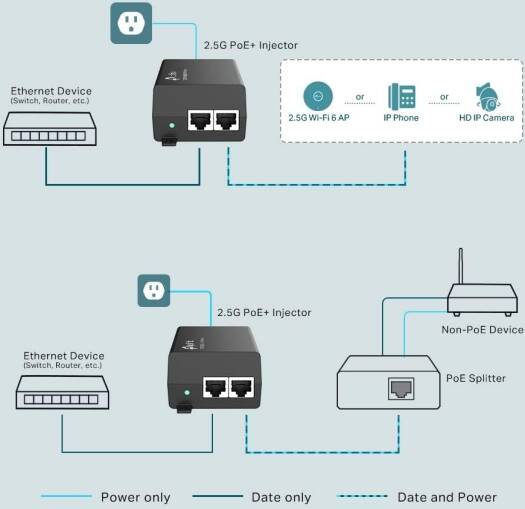 POE260S The PoE+ Injector TL-PoE260S fully complies with IEEE 802.3at/af standards and can work with all IEEE 802.3at/af PoE Compliant PDs (Powered Devices) or PoE Receiver Adapters, such as TP-Link’s TL-PoE10R, or an equivalent product, to expand your network to where there are no power line or outlet, where you wish to supply power to devices such as APs, IP cameras or IP phones, etc. Specifications