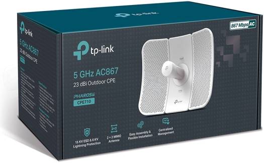 802.11ac for up to 867Mbps on 5GHz wireless data rate • 23dBi high-gain directional 2×2 MIMO, ideal for long-distance application • Excellent beam directivity, improved latency and noise cancellation • Innovative snap-lock parts make for fast assembly and a sturdy structural design keeps CPE710 stable even in strong winds • Durable IP65 weatherproof enclosure along with 15kV ESD and 6kV lightning protection ensures all-weather suitability • Pharos Control gives administrators a free, centralized management system • Passive PoE supports to allow flexible deployment and convenient installation SKU: SKU-3870648B Category: Access Points Brand: TP-LINK