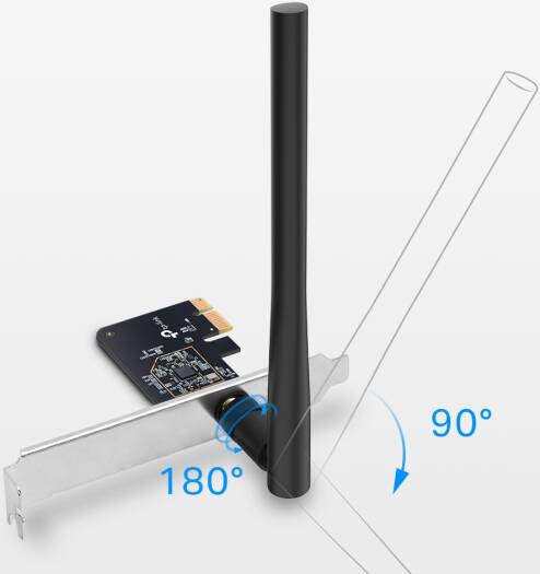 Archer T2E AC600 Wireless Dual Band PCI Express Adapter AC600 Dual Band WiFi – Make full use of your network with Wi-Fi speeds up to 600 Mbps (433 Mbps on the 5 GHz band and 200 Mbps on the 2.4 GHz band) MU-MIMO Supported – Boost network thoughput and efficiency when working with a compatible MU-MIMO router Broad Wireless Range – Connect to your Wi-Fi in more parts of your home with powerful signal-boosting high-gain antenna WPA3 Supported – Improve cybersecurity with more secure and individualized protection Low-Profile and Full-Height Brackets – Customized options give you the flexibility to find a bracket that perfectly fits your board design Specifications
