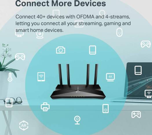Next-gen Gigabit Wi-Fi 6 speed-2402 Mbps on 5 GHz and 574 Mbps on 2. 4 GHz band ensure smoother streaming and faster downloads Connector devices-of technology increase capacity by 4 times to enable simultaneous transmission to more devices Ultra-low latency-up to 75% reduction in latency enables more responsive gaming and video chatting Expanded wi-fi coverage-four high-gain external antennas and Beamforming technology combine to extend strong, reliable Wi-Fi throughout your home. Enhanced security-more secure and trusted Wi-Fi with tp-link homecare SPEED: 574 Mbps at 2.4 GHz + 2402 Mbps at 5 GHz SPEC: 4× Antennas, Intel Dual-Core CPU, 1× Gigabit WAN Port + 4× Gigabit LAN Ports, USB 3.0 Port, 1024-QAM, OFDMA, HT160 FEATURE: Tethe