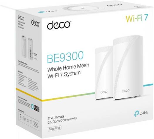 TP-Link Deco BE65 (2-Pack x 3), BE9300 Whole Home Mesh WIFI 7 System, 9214 Mbps Wireless Tri-Band WiFi, 2.5 Gbps Wired, MLO, HomeShield, Combined Backhaul, White | Deco BE65 (2-Pack x 3)