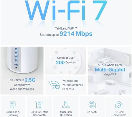 | Advanced Functions | Multi-Link Operation (MLO) 320 MHz Channel 4K-QAM Multi-RUs Works with Alexa and Google Assistant |