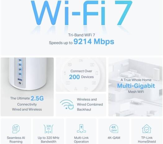 | Advanced Functions | Multi-Link Operation (MLO) 320 MHz Channel 4K-QAM Multi-RUs Works with Alexa and Google Assistant |