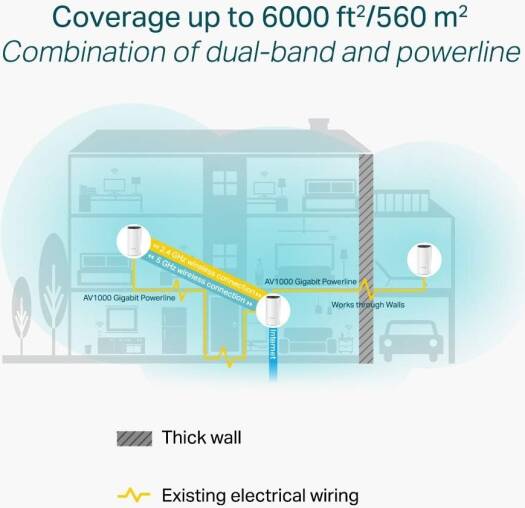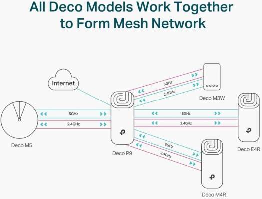 Deco P9 AC1200+AV1000 Whole Home Hybrid Mesh Wi-Fi System Mesh Wi-Fi with power line Deco P9 is a mesh router that supports power line networking. Power line and wireless connections work together to link Deco units, providing even faster network sp