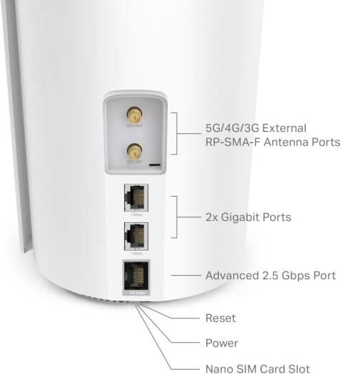 | Ports and Connections | 1× 2.5 Gigabit Port, 2× 1 Gigabit Ports (WAN/LAN auto-sensing) |