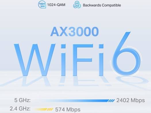 | WiFi Speeds | AX3000: 5 GHz – 2402 Mbps, 2.4 GHz – 574 Mbps |