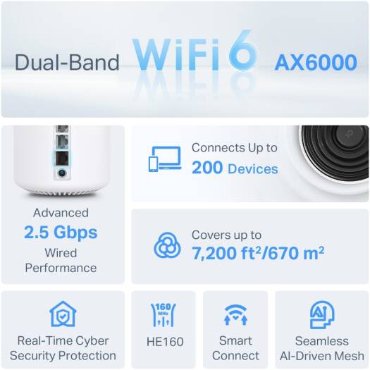 | Mesh Technology | TP-Link Mesh with optional Ethernet backhaul |