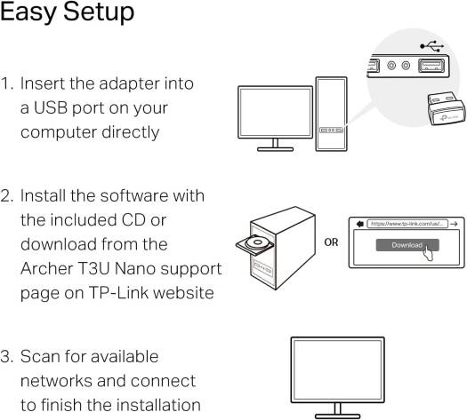 TP-Link Nano AC1300 USB Wifi Adapter for desktop PC(Archer T3U Nano) Nano size dual band Wi-Fi for high speed Wi-Fi connection (433Mbps on 5GHz and 200Mbps on 2.4GHz) Supported systems: Windows 11/10/8.1/8/7/XP and Mac OS 10.15 or earlierIndustry-Leading SupportTP-Link offers 24/7 technical support and 2-year warranty for most home products, 1 more year than most networking brands.