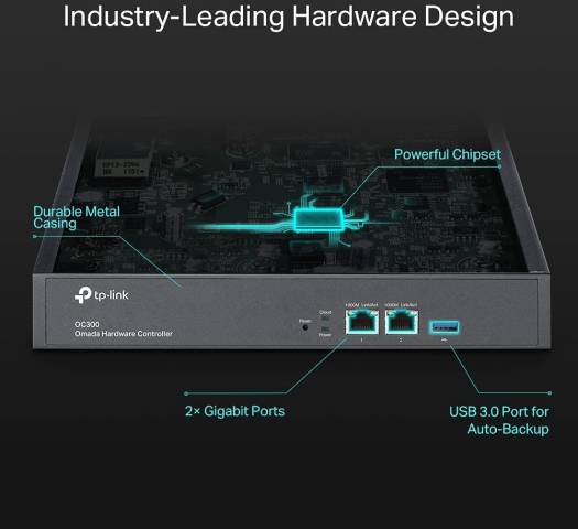 TP-Link Omada Hardware Controller, 2x Gigabit Ethernet Ports, 1x USB 3.0 Port, Manage up to 500 Omada Devices, Supports up to 15,000 Clients, Rack-Mountable, Black | OC300