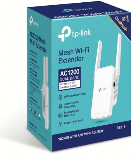 TP-LINK RE315 AC1200 Mesh Wi-Fi Range Extender, Dual-Band Wi-Fi, Flexible Modes, Smart Signal Indicator, 300Mbps (2.4GHz), 867Mbps (5GHz), EasyMesh-Compatible, White | RE315