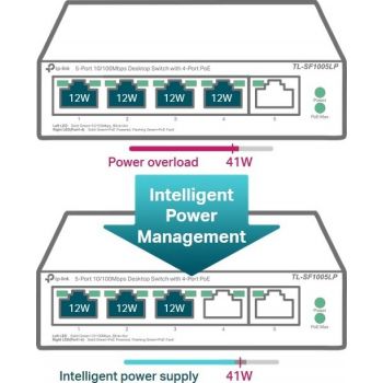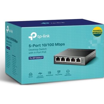 TP-Link TL-SF1005LP Desktop Switch w/4-Port PoE, 5-10/100 Mbps RJ45, 41W power, 1Gbps capacity, IEEE 802.3af, 250m Poe, Plug&Play | TL-SF1005LP (UN)
