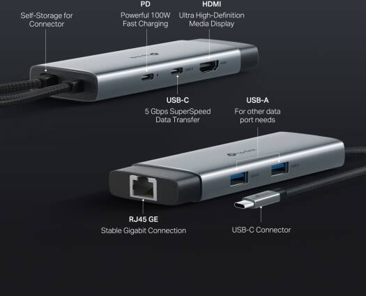 Tp-Link USB Type-C 6 in 1 Hub, 4K HDMI, Gigabit RJ45, PD 100W, USB 3.0, 5 Gbps SuperSpeed Data Transfer, Plug & Play, Mac, Windows, Linux, iPadOS, iOS, Android, Chrome | UH6120C