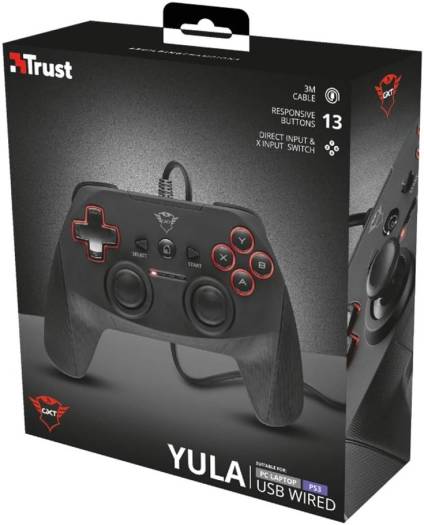 Trust GXT 540 Yula Wired Gamepad, For PC and PS3, 13 Buttons, Vibration Feedback, USB Power Source, Compatible With PC / Laptop / Gaming Console | 20712