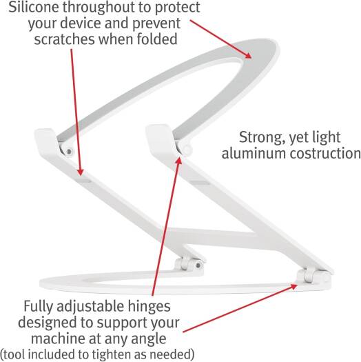 Curve Flex is an elegant, flowing aluminum stand that complements the design of your MacBook or Laptop with incredible adaptabilty. Flex's base can be adjusted from 2" to 12" which can raise your screen to an ergonomic height that is also optimal for webcam/conferencing use. Use your laptop on Curve Flex to create a more comfortable desktop with your favorite external keyboard & mouse, or use the combo with an external monitor to create the perfect dual-screen setup. Curve Flex is made for todays hybrid office/home work environment and folds flat for portability – use the included neoprene case to protect from scratches. With its beautiful matte finish and design, it is the ultimate partnership of style and functionality and a welcome change from the other mixed metal and plastic options available.