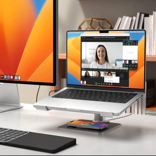 Twelve South HiRise Pro for Laptops and MacBooks, Ergonomic, Height, Adjustable Stand with MagSafe Wireless Capable Charging Base, Silver