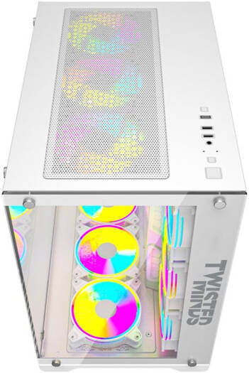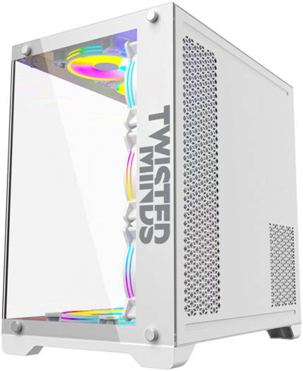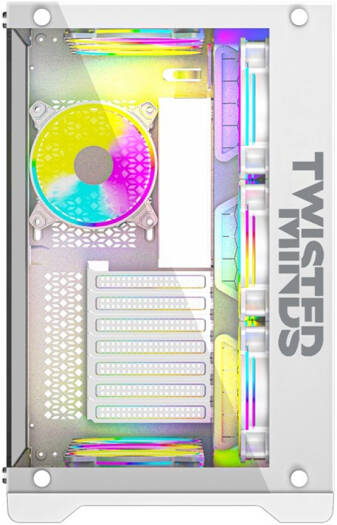 Twisted Minds Bullet-07 Mid Tempered Glass Mid Tower ATX Gaming PC Case, Pre Installed 4x 120mm ARGB Fans, Up to 360mm AIO, 3.5″ HDD* 2+2.5″ SSD* 2 Drive Support, USB 3.0+USB-C, White | TM1-B-S-W