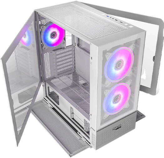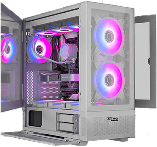 Twisted Minds Minimalist -04 Mid-Tower E-ATX Gaming PC Case, Tempered Glass + Mesh Panels, Ample Cooling, Pre-installed 4*120mm ARGB Fans, Fits up to 420mm AIO, USB 3.0 / 2.0, HD, White | TM-X5-W