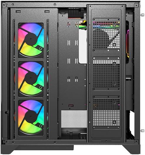 | Fan Support | 3 x 120mm on MB tray, 3 x 120mm on Top, 2 x 120mm on bottom PSU cover, 1 x 120mm on Rear |