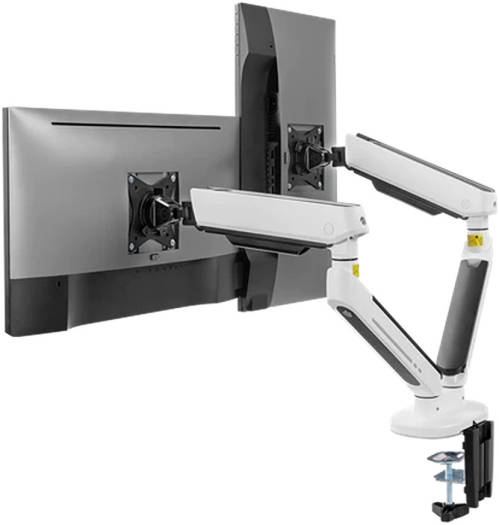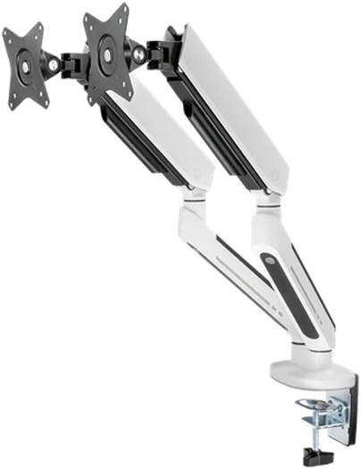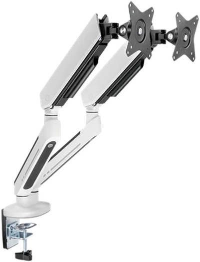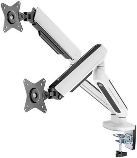 Twisted Minds TM-54-C012-W Dual Premium Gaming Monitor Arm With RGB Lighting, Up to 35″ Monitors, Articulating Aluminum Gas Spring, Detachable VESA, C-Clamp, Grommet, Cable Mgt, White | TM-54-C012-W