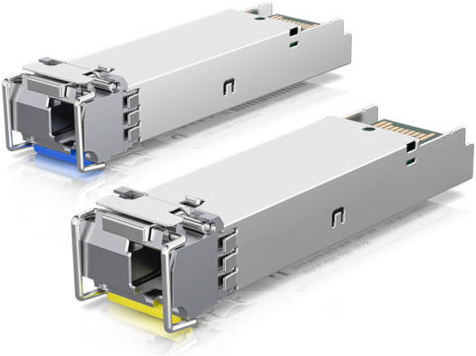 Bi-Directional Single-Mode LC SFP Transceiver Kit Enjoy reliable bandwidth with your fiber installations with the Bi-Directional Single-Mode LC SFP Transceiver Kit from Ubiquiti Networks . This 2-pack kit includes complementary SFP modules with simplex LC connectors. The module with the blue latch features a 1310 nm transmit and 1550 nm receive wavelength while the yellow latched module has a reverse configuration. Working together, the modules have a bi-directional data transfer rate of up to 1.25 Gb/s with a range of about 1.9 miles over a Single-Mode fiber connection. Key Features Simplex LC Connector Up to 1.25 Gb/s Through