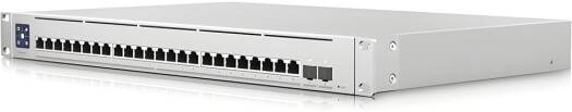 EnterpriseXG 24 A 24-port, Layer 3 switch capable of supporting high-capacity 10 GbE RJ45 and 25G SFP28 connections. Expand your business’s network capacity to support high-bandwidth devices and applications with the Switch Enterprise XG 24 24-Port 10G Managed Network Switch from Ubiquiti Networks . Featuring twenty-four 10G RJ45 Ethernet ports with a 580 Gb/s (290 Gb/s non-blocking) switching capacity and 431.52 Mpps forwarding rate, this high-performance Layer 3 switch is designed to quickly transfer data between computers, servers, network attached storage, and other compatible wired devices. There are also two 25G SFP28 ports available for fiber connections. You can manage your configuration settings using the convenient, built-in 1.3″ LCM color touchscreen or by using the UniFi Network Application on almost any device, from almost anywhere in the world.