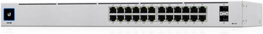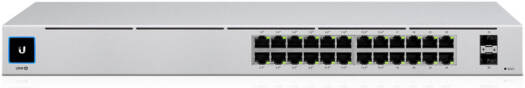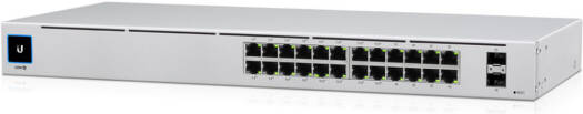 Standard 24 PoE Expand your business’s network with the fully manageable UniFi 24-Port Gigabit PoE+ Complaint Managed Switch from Ubiquiti . Designed for a rack mount or desktop installation, this passively cooled 24-port Gigabit switch includes 16 32W PoE+ connectors with a total power budget of 95W to power devices such as network security cameras. Each port delivers 26 Gb/s non-blocking throughput, with a 52 Gb/s switching capacity, and a 38.69 Mpps forwarding rate. Two 1Gb SFP Ethernet Ports are available for additional expansion with compatible devices. Administrators may monitor and manage the switch with the 1.3″ touchscreen display or access and configure it and connected devices using the UniFi Network Controller application. Key Features 24 x Gigabit Ethernet Ports