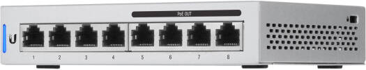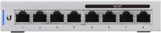 8 PoE (Gen1) US-8-60W 8-Port Managed Gigabit Switches The US-8-60W is an 8-port gigabit switch with four 802.3af PoE ports. Its auto-sensing PoE ports deliver up to 15.4W of power per port. The US-8 is a PoE Powered 8-port gigabit switch with PoE Pass-through. Perfect for cleanly adding Ethernet ports where needed, with pass-through to keep your PoE device powered. Non-Blocking Throughput The new 8-port models feature Gigabit Ethernet ports in a compact form factor. For its total, non-blocking throughput, each Unifi Switch supports up to 8 Gbps. Switching Capacity The Unifi Switch offers the forwarding capacity to simultaneously process traffic on all ports at line rate without any packet loss, with a switching capacity of 16 Gbps. Seamless Integration A single instance of the Unifi Controller running in the cloud can manage multiple Unifi sites within a centralized interface. Each site
