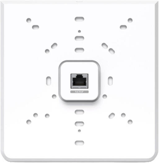 U6 Enterprise In-Wall Wall-mounted WiFi 6E AP with 10 spatial streams, 6 GHz support, and a built-in 4-port switch. Designed for high-density office networks. Features WiFi 6E tri-radio with 6 GHz 10 spatial streams 115 m² (1,250 ft²) coverage 600+ connected devices Powered using PoE+/PoE++* (4) GbE ports with (1) PoE output 2.5 GbE uplink Expand your business with fast and reliable connectivity by integrating the U6 Enterprise In-Wall Wireless Tri-Band Wi-Fi 6E Access Point from Ubiquiti into your network. Designed to discreetly blend into most indoor environments while providing high-speed Wi-Fi with compatible devices, this access point installs into a wall using the included kit. Connect your PoE+ compatible network switch or router to the access point’s 2.5G Ethernet port to transfer