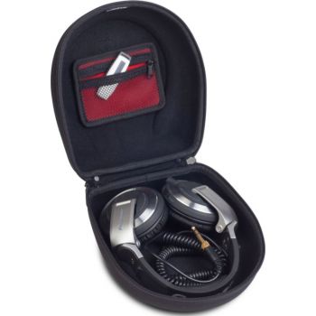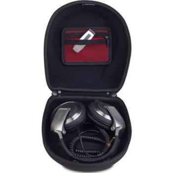The U8200 BL DJ Headphone Case is the smart solution for the professional DJ that knows they need to protect their headphones. The Creator headphone hard case large has been tastefully designed with a D-shape profile to compliment the folded form of the DJ’s headphones. Constructed from Durashock EVA with a laminated polyester exterior, thecase provides protection against impact, scratches & liquid spillages. An injection moulded zipper and heavy duty non-slip carry handle ensure that the case is robust yet comfortable for the frequent travelling DJ The main features of the U8200 BL DJ Headphone Case include : Fits Sennheiser HD 25-1, AIAIAI TMA 1 and most DJ Headphones EVA Durashock Exterior Heavy duty handle Easy grip zip Very Robust Handle Dimensions (W x H x T) cm: 37 x 34.5 x 6.5 inches: 14.5 x 13.5 x 2.5 Weight: 0.7 lbs: 1.5