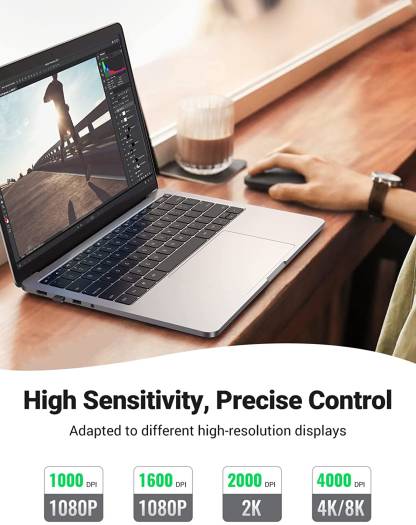 Ugreen 2.4G Slim Wireless Mouse, 4 Levels Adjustable 4000 DPI, Ultra Silent Mouse, Long-Lasting Battery Life, 10M Transmission Distance, For Laptop / Computer / Chromebook / MacBook, Black | 90372