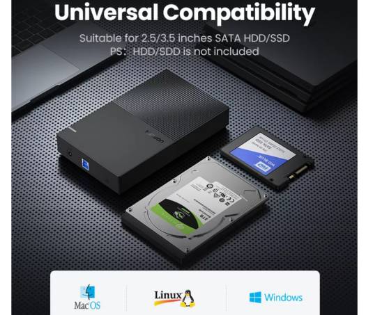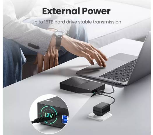 UGREEN 3.5″ SATA Hard Drive Enclosure, Up to 5Gbps Transfer Rate, With USB-B To USB-A Cable, 5G With 12V2A Adapter, UK, Compatible With Windows / Linu