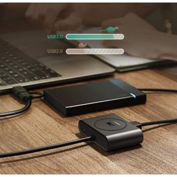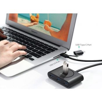 Ugreen 40850 USB 3.0 Hub With USB-C Port, 1m Cable Length, LED Indicator, Compatible with Windows 10/8/8.1/7/ Vista / XP and Mac OS X, Linux, Black | 40850