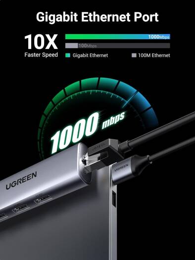 5-In-1 USB 3.0 Hub UGREEN 3-Port SuperSpeed USB 3.0 Hub with RJ45 Gigabit Ethernet Adapter not only adds a Gigabit RJ45 Network connector to your PC or Mac through a single a USB 3.0/ 2.0 port but also add 3 more SuperSpeed USB 3.0 ports. Specifications
