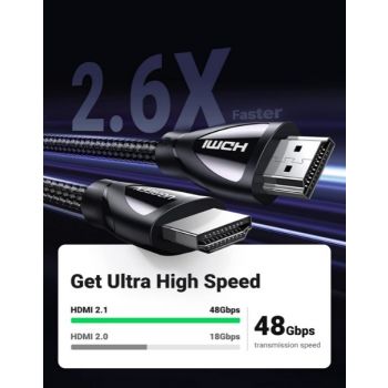 UGREEN 8K HDMI 2.1 Ultra High Speed Cable, Supports 4K@240Hz and 8K@60Hz, 48Gbps Bandwidth, Male-Male with Braided, Support 3D And Lip Sync, 48 Gbps, Nickle Plated, 3 Meter Length, Black | 80404