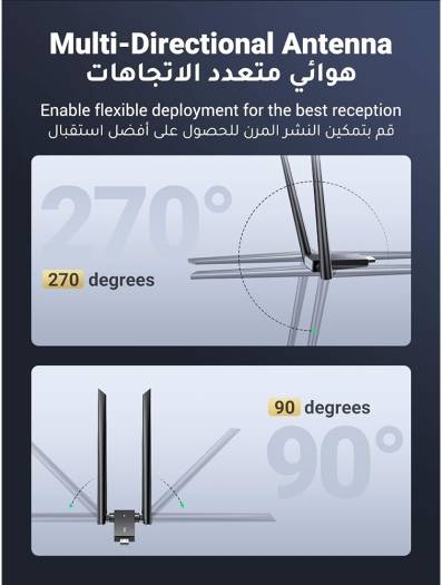 Ugreen AC1300 USB Wi-Fi Adapter 1300Mbps Super Speed – UGREEN USB WiFi Adapter supports both 5GHz – up to 867Mbps and 2.4GHz band – up to 400Mbps at the same time. This WiFi Dongle equipped with USB 3.0 interface, the maximum data transfer speed can reach 5Gpbs, which greatly reduces the data loading time. The Network Card makes it easy to enjoy 4K video for a better entertainment and work experience. More Stable Signal – UGREEN Ethernet Adapter is equipped with IEEE 802.11AC technology, which greatly improves the strength of received and transmitted signals. 2.4GHz and 5GHz dual-band signals can be switched freely to meet the needs of different application scenarios. AC1300 WiFi Adapter provides stronger penetration capability and wider coverage, allows you to enjoy a stable network signal at home and in any corner of the office area for a better network experience. wide Compatibility – UGREEN Wireless Adapter can support windows XP/7/8/8.1/10/11,Windows 10/11 is drive-free, windows XP/7/