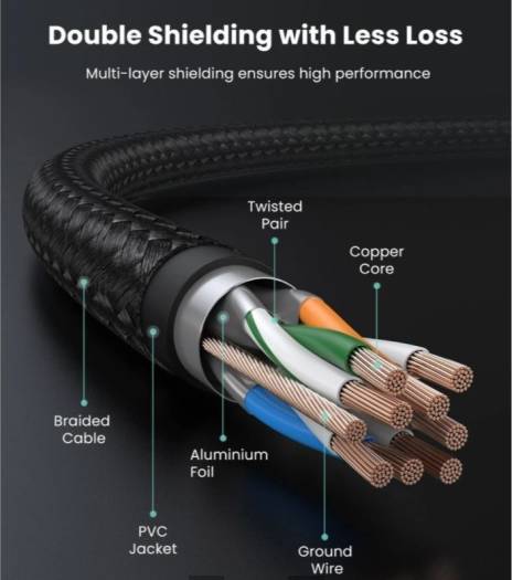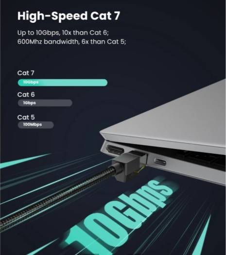 High-Speed Cat 7 RJ45 Cable UGREEN Cat 7 Ethernet cable supports up to 10Gbps data transfer and 600MHz bandwidth, much faster than CAT6 and with less interference. It is the best option for gaming, online video streaming, large files download and more. F/FTP Better Shielding SKU: SKU-24CE7496 Category: Ethernet Cables Brand: UGREEN