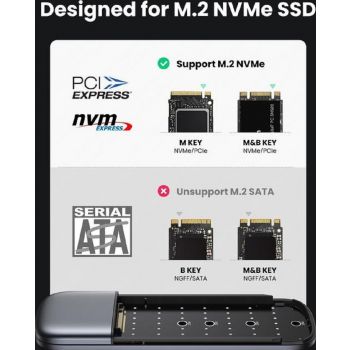 Portable NVMe M.2 SSD External Enclosure The M.2 USB-C Enclosure is designed to house a M-Key or M+B Key NVMe PCIe SSD and turn it into a portable USB 3.1 external drive for maximum utilization. Tool-free and no driver needed, just plug and play. Ideal for cloning files, backing up data, reusing old M.2 SSD, expanding storage space. 10Gbp SuperSpeed This M.2 SSD enclosure features latest USB 3.1 Gen 2 and PCIe GEN 3, which supports amazing data transmission rate up to 10Gbp. It is faster enough to transfer 1GB files in 1 second. <span class="sc-eGJWMs gQYBcx pf-27_" style="font-size: 16px;" data-pf-type="Text" data-m