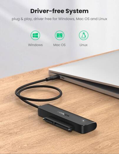 UGREEN CM321 SATA To USB 3.0 Adapter, Hard Drive Cable, External Disk Reader, 2.5 SSD To HDD, Up To 5Gbps Transfer Speeds, UASP Connector, For PC, Laptop, Desktop | 70610