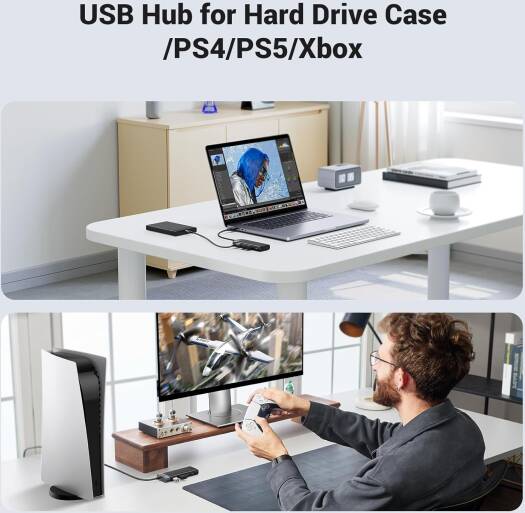 UGREEN CM653 USB 3.0 HUB 5Gbps High Speed Data Transmission With USB-C Power Supply, Multiple Extension For Laptop, Desktop PC, Xbox, PS5, Mouse, Keyboard, Flash Drive, Printer | 15548