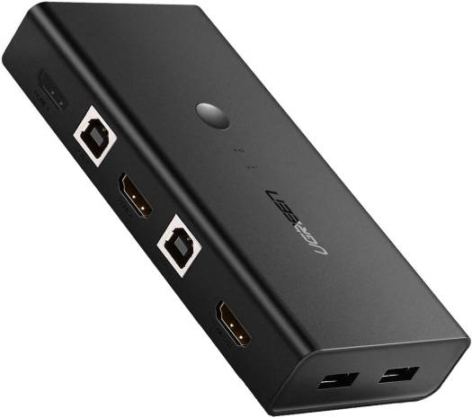 UGREEN KVM HDMI USB Switch, 2-Port HDMI 4K Switcher Box, Monitor Sharing Selector with USB Hub for Laptop, Desktop, Support Keyboard Hotkey & Auto Switch, 2 USB Cables | 50744