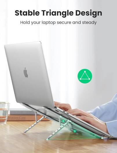 UGREEN Foldable Laptop Stand The laptop riser fits all laptops and tablets from 8 to 17.3 inches, such as Macbook pro air, iPad Pro mini, Dell, HP, Lenovo, ThinkPad, Surface, Chromebook, Microsoft Surface etc. As long as your device meets the size requirements, then this portable laptop stand will work for you. This foldable laptop stand can easily be folded to a flat surface, and easy to put in a bag filled with books without a problem.
