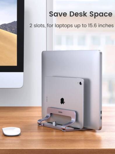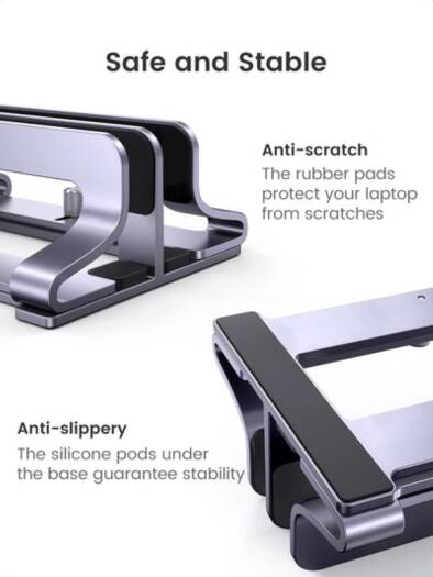 UGREEN LP258 Vertical Laptop Stand/Holder, Compatible With MacBook, Adjustable Up To 17.3 Inch Gaming Laptop, Anti-Slip, Anti-Scratch Design, Silver | 60643