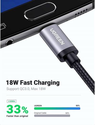 Perfectly Match Quick Charger: Ugreen micro usb cable braided supports Quick Charge technology, greatly save charging time for you. For QC 2.0/3.0 enabled devices, output up to max 18W (12V/1.5A 9V/2A 5V/2A); for standard Non-QC 2.0/3.0 devices, output up to max 5V/2A. Universal Compatibility: This micro usb charger cable is compatible with most Android Cell Phones, Tablets, Windows Phones (such as Note 3/4/5, Galaxy S3/S4/S5/S6 Edge S7, Nokia Lumia, LG, HTC), MP4, hard drives, PlayStation 4, more portable devices with micro usb interface. Everlasting Durability: You can plug the gold plated connector in your devices slot quite easily and steadily, and won’t get loose or fall out from your devices as your normal micro usb cables. The Nylon braided outer of the usb to micro usb cable is quite robust and flexible, making cables tangle free and everlasting. Build To Last: this usb charger cable is with premium nylon braided ho