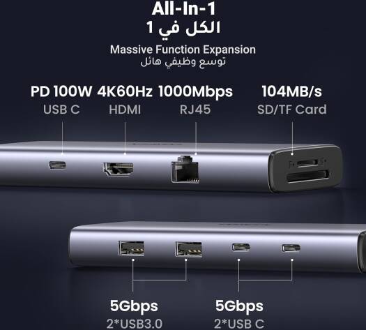 Revodok 109 9-in-1 USB C Hub 9-in-1 USB C Hub: 2*USB-C data port, 2*USB 3.0 Ports, 1*4K 60Hz HDMI Port, 1*PD 100W Charging Port, 1*Gigabit Ethernet Port, SD and TF card readers. All ports can work simultaneously well!
