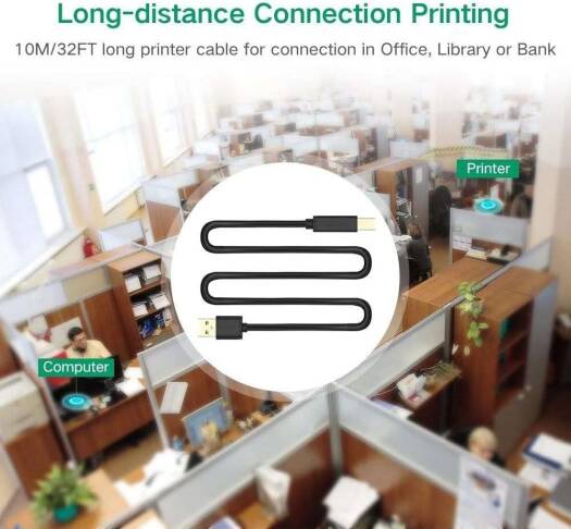 UGREEN USB Active Printer Cable 15M UGREEN 2.0 USB A Male to B Male Cable is the reliable choice for connecting devices with USB Type B Male ports such as printers, scanners, printer switch hubs, and other legacy devices that are economical to keep as a back-up. Gold-Plated Connector and Foil/Braid Shielding: Corrosion-resistant gold-plated connectors & foil/braid shielding, give this resilient cable long-term use without noise