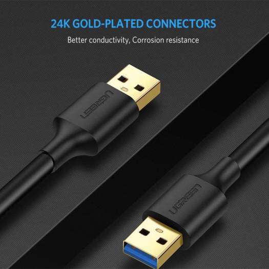 Overview This Gold-Plated SuperSpeed USB 3.0 Type A Male to Male Cable support connecting various peripherals to a host computer (Mac or PC) with this USB 3.0 cable. It offers convenient connections to hard-drive enclosures, printers, modems, cameras, and other USB-compatible devices. The plug-and-play design means it’s easy to install—simply connect each end, and you’re all set to go. SuperSpeed USB 3.0 delivers 10x the data transfer rate of Hi-Speed USB 2.0 at up to 5 Gbps. The combination of gold-plated connectors, bare copper conductors, and foil & braid shielding provides superior cable performance, error-free data transmission. SuperSpeed USB 3.0