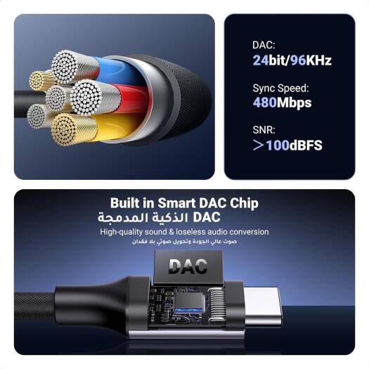 UGREEN USB C to 3.5mm Jack Headphone Amplifier Aux Adapter, Built-In DAC Chip, Hi-Fi Stereo, Aluminum Alloy Shell, Nylon Braided Cable, Black | 80154