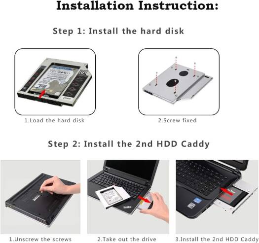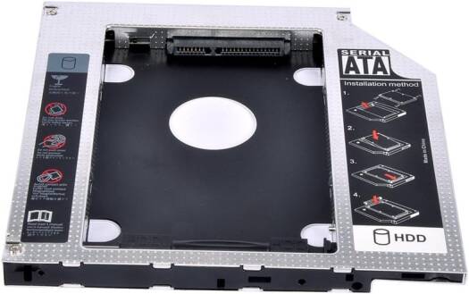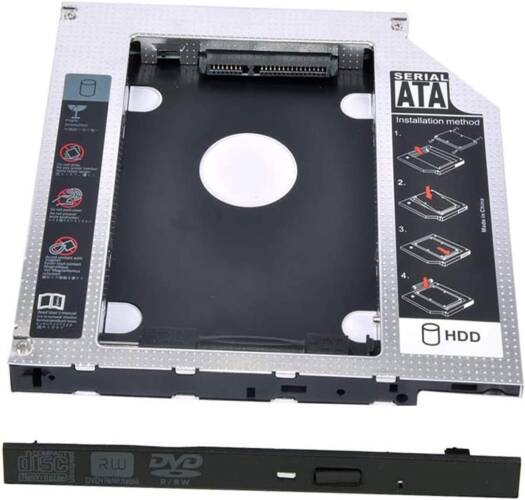Universal 12.7mm SATA to SATA 2nd Hard Drive Caddy : Add a second 2.5'' HDD or SSD to your laptop via the E-Modular (E-Module) Bay / optical drive bay with this drive caddy. Compatible with: DELL HP LENOVO ThinkPad ACER Gateway ASUS SONY SAMSUNG MSI Laptop which has the SATA 12.7mm Optical Drive (Not Fit For Apple MacBook) This is great quality and useful part for upgrade your laptop to get 320GB/500GB/1TB additional storage space, greatly improve your laptop performance. Support installation of 2nd Operating System on the 2nd HDD/SSD and boot selection. Specification: 1.Thickness: 12.7mm (Support 2.5 inch SATA HDD and SSD) 2.Material: Aluminum 3.Interface: SATA to SATA Package included: 1 x 2nd HDD Case(Just a case, not include the HDD) 1 x Bezel 1 x Screwdriver