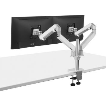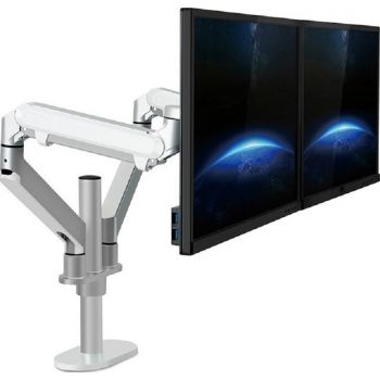 Dual Monitor Mount, Fits 13-32" Monitor, Gas Spring Adjust, Tilt Angle Adjust, Two Installation Methods, Up to 10kg Max Weight Each Bracket, Universal Compatibly, White | 1332NCM